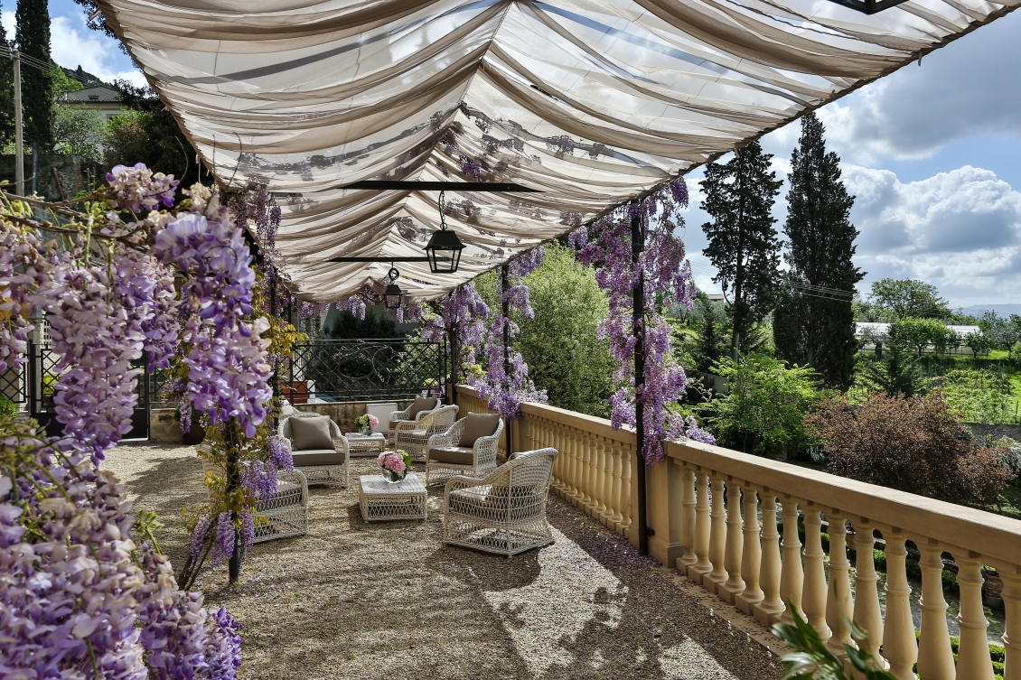 La magnifique villa Brilliant Wedding Tuscany se distingue par ses deux charmants bâtiments : une magnifique tour et une minuscule grange. Comme Joanne est une grande passionnée de cuisine et qu’elle voulait essayer quelques recettes locales, il y avait une grande cuisine à sa disposition. Mais si cela n’est pas votre tasse de thé, le personnel de la villa est là pour vous faire profiter des meilleures services de restauration, les barbecues et bien d’autres options. Dehors, le couple disposait d’une terrasse à manger ornée de fresques et d’un étonnant jardin à l’italienne. Arthur adore les activités aquatiques, donc la merveilleuse piscine et le jacuzzi étaient un grand bonheur pour lui. Cette magnifique villa proposée par Brilliant Wedding Tuscany, comme beaucoup d’autres, est située sur les collines de la région du Chianti, et de là, notre couple jouissait d’une vue exceptionnelle sur les montagnes et les collines environnantes.